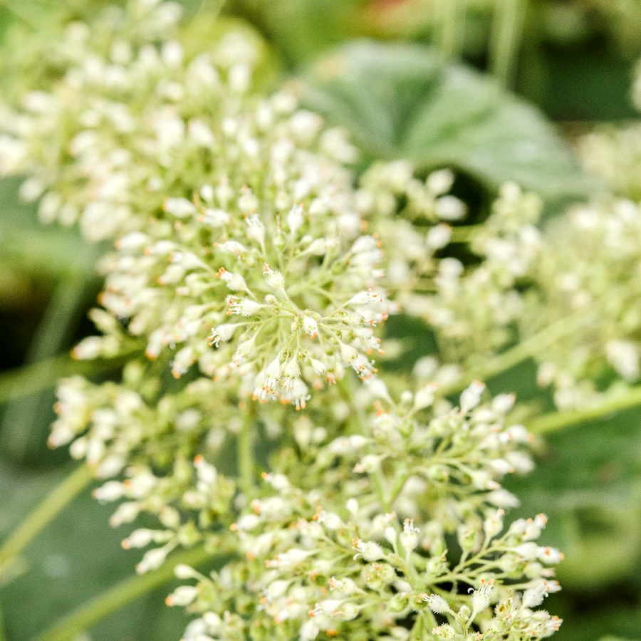 The hairy alumroot is fascinating with its distinctive, dense hairiness and vibrant colors. The large leaves glow in fresh light green in summer before turning a spectacular orange-red in fall—a firework display for semi-shaded garden corners! From September onwards, richly flowering spikes in delicate greenish-white rise above the bushy foliage and attract numerous insects. The flowers continue to bloom until November and are wonderful as cut flowers.