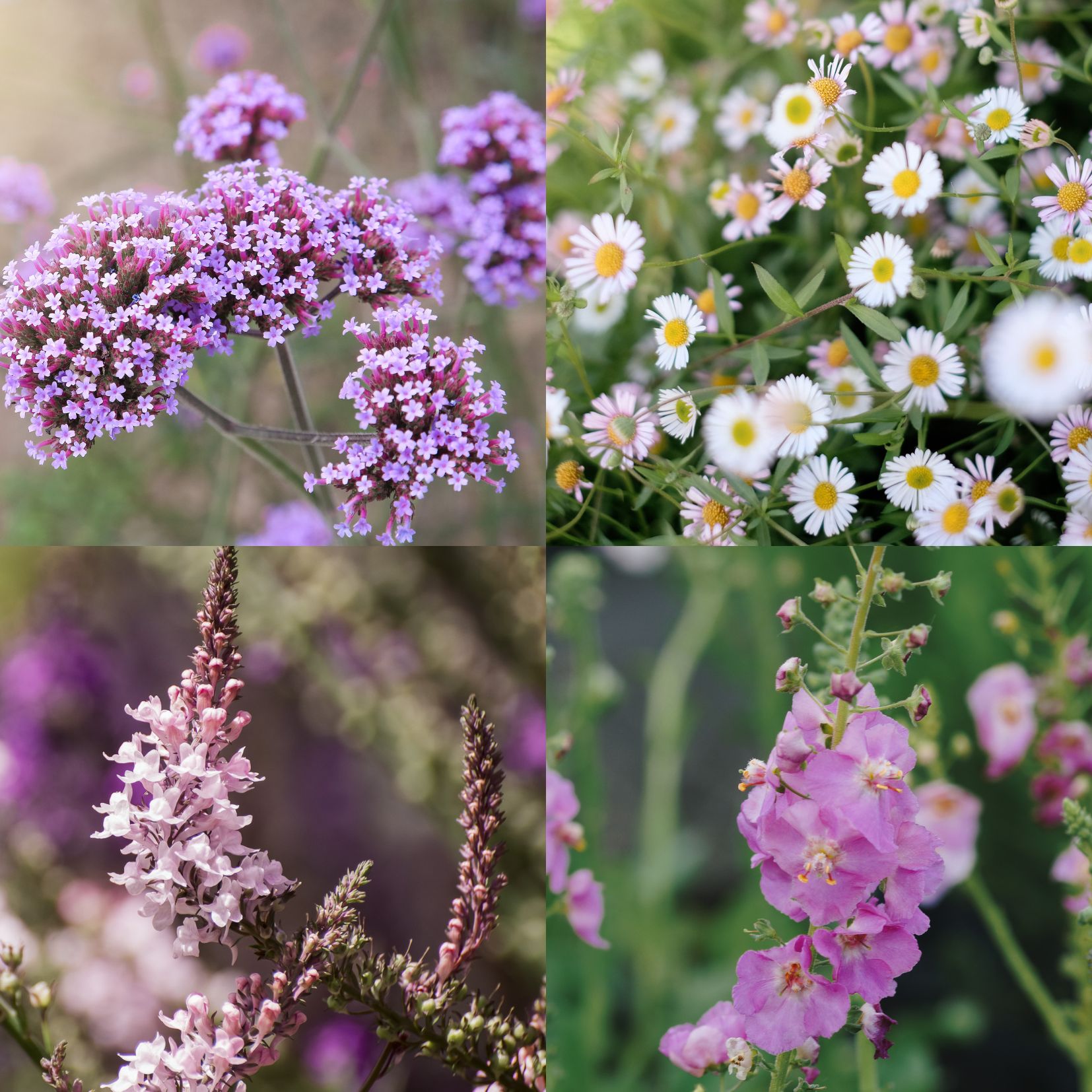 2x Verbascum hybridum ‚Rosetta’ (Königskerze) , 3x Verbena bonariensis (Patagonisches Eisenkraut), 3x Linaria purpurea ‚Canon J. Went‘ (Rotes Leinkraut), 2x Erigeron karvinskianus ‚Blütenmeer‘ (Spanisches Gänseblümchen)